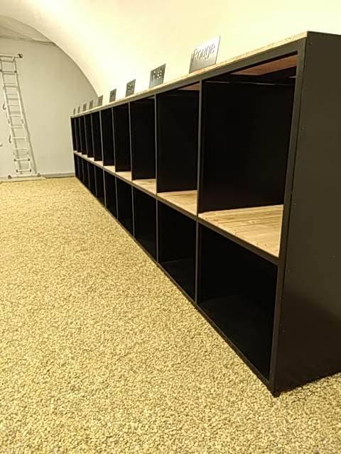 Nous avons donc créé ces grands casiers de 8 mètres en acier avec ses étagères en bois.