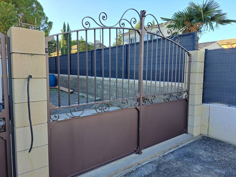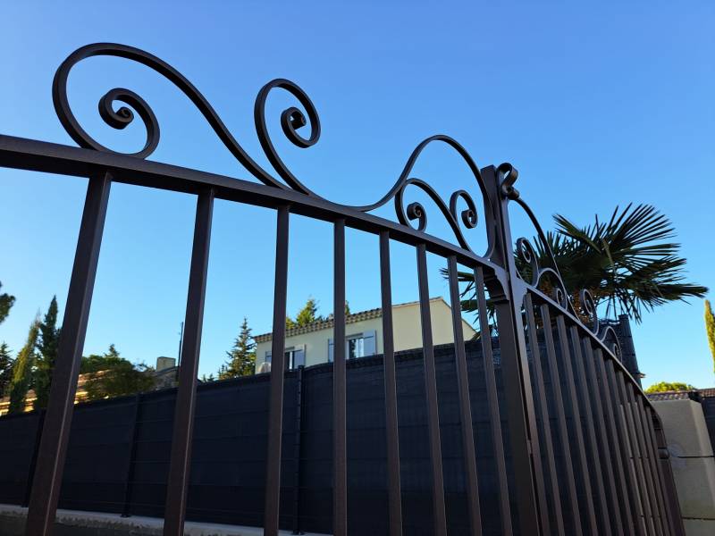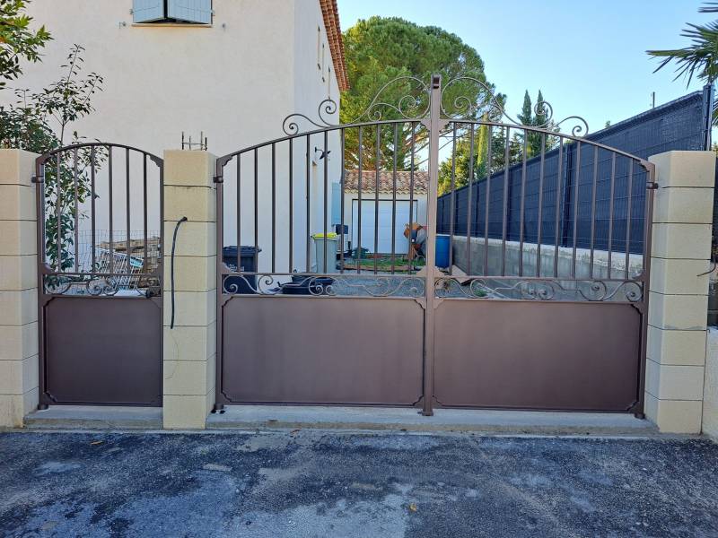 Réalisation, peinture et pose d un portail 2 vantaux de style provençal et de son portillon, sur la commune de Mallemort en Provence.