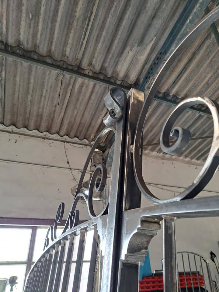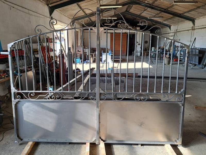 Nous avons appliqué une peinture martelée de couleur châtaigne, très résistante dans le temps.Les pivots à l ancienne ont étés directement forgés sur les montants garantissant une grande solidité et une longue durée de vie.