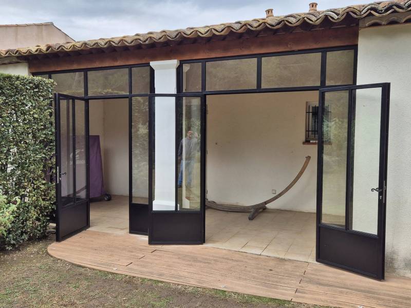 Notre client désirait pouvoir fermer un auvent avec des menuiseries en acier en gardant un maximum d ouverture.